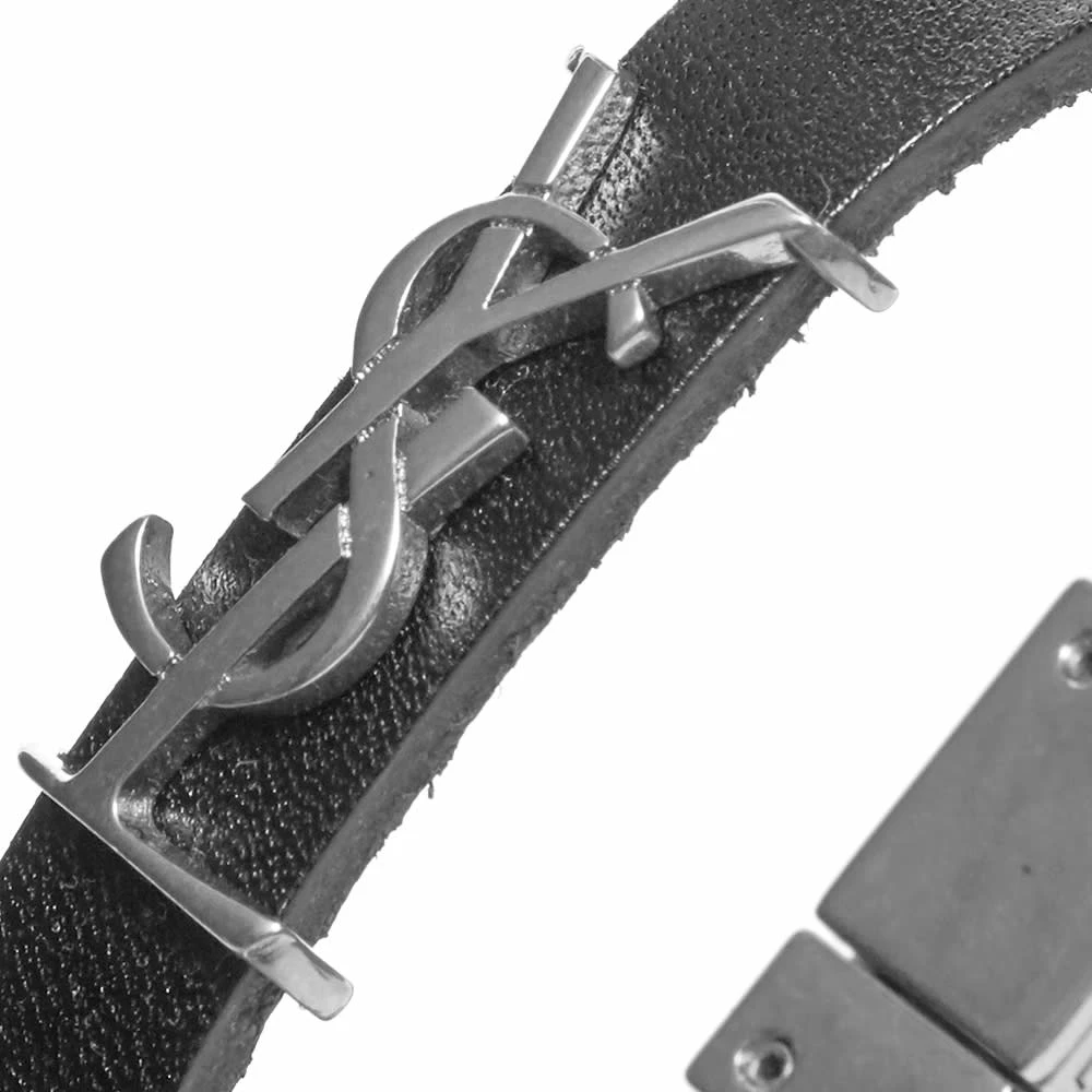Effortlessly chic, the YSL leather bracelet from Saint Laurent will be a luxurious addition to any look. Engraved with a silver-toned plaque and secured with a clip clasp, bring a touch of French luxury to your accessory rotation.
