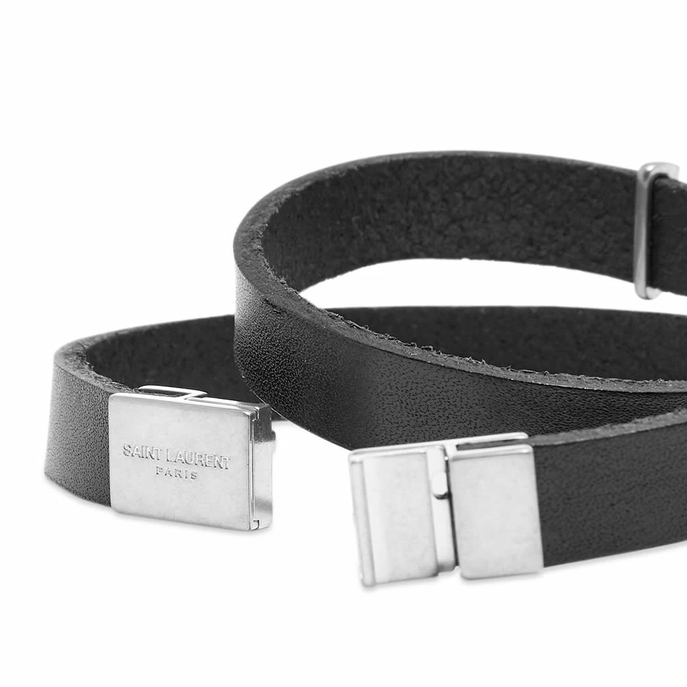 Saint Laurent utilises Italian calfskin leather for this premium double wrap bracelet. Fitted with a silver YSL plaque at the front, the style is kept minimal with a sleek metal clasp fastening.