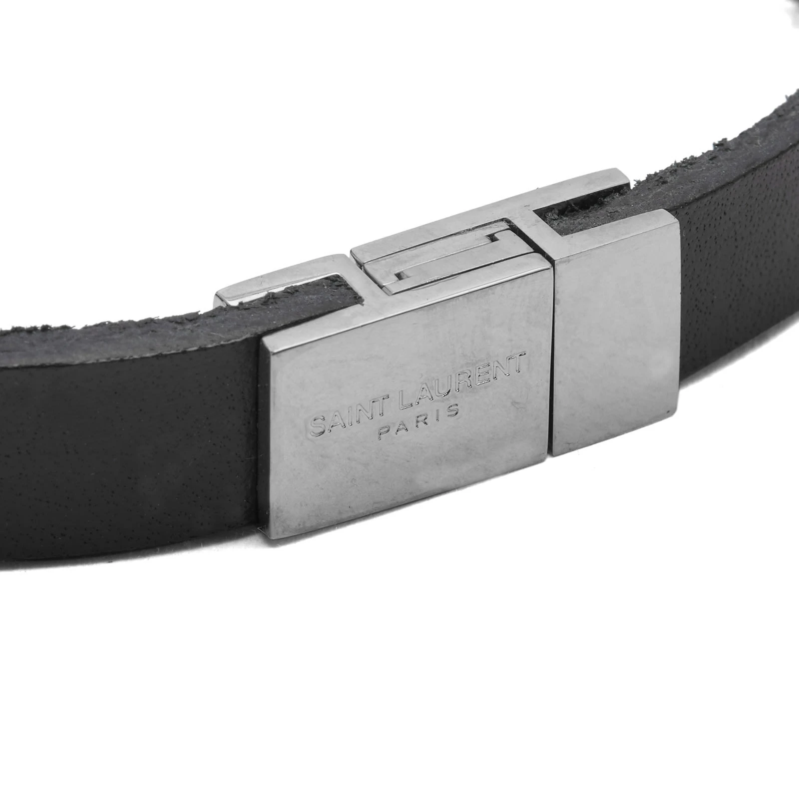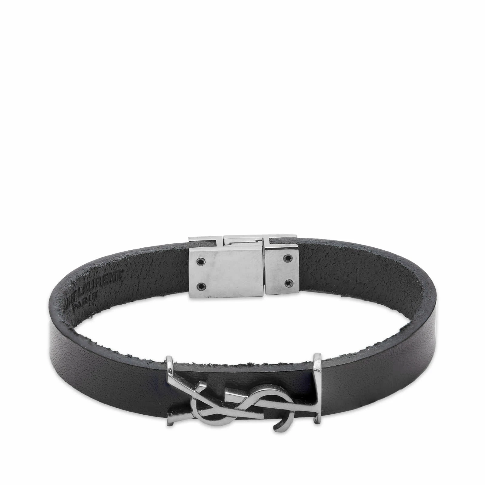 Saint Laurent, now under the creative control of Anthony Vaccarello, continues to build on the Laurent legacy with contemporary iterations of its signature style. Designed with a leather strap, the brand’s iconic initials feature on this bracelet with a gold tone hardware logo plaque.