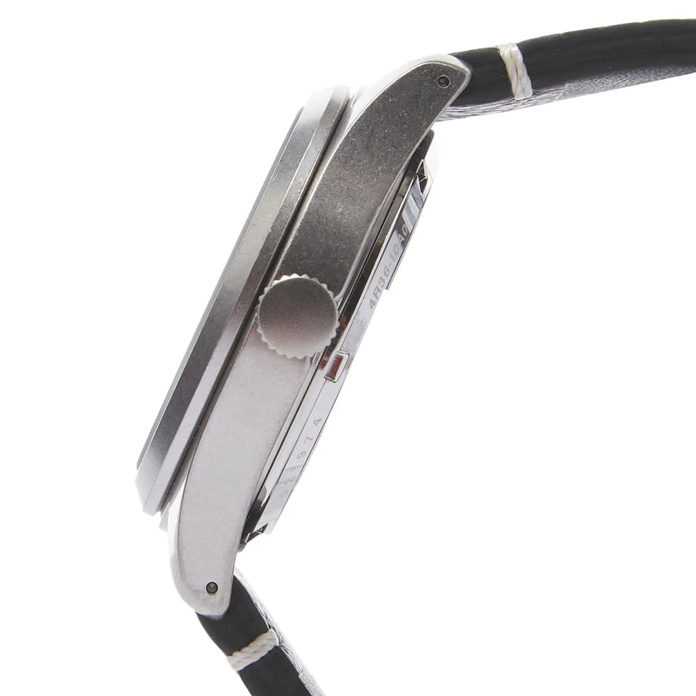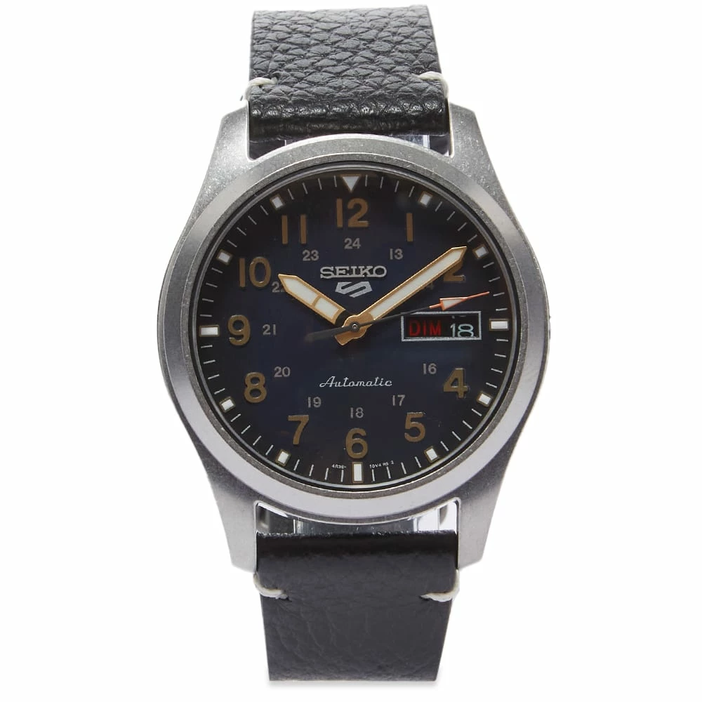 Seiko’s 5 Sports watches are all about classic styling and practicality, and that’s made clear by this one. It’s inspired by traditional trench watches, which is evidenced in the blue leather strap and minimal aesthetic. There’s a load of handy features come with it, too, like the day-date display, recessed crown and LumiBrite technology.