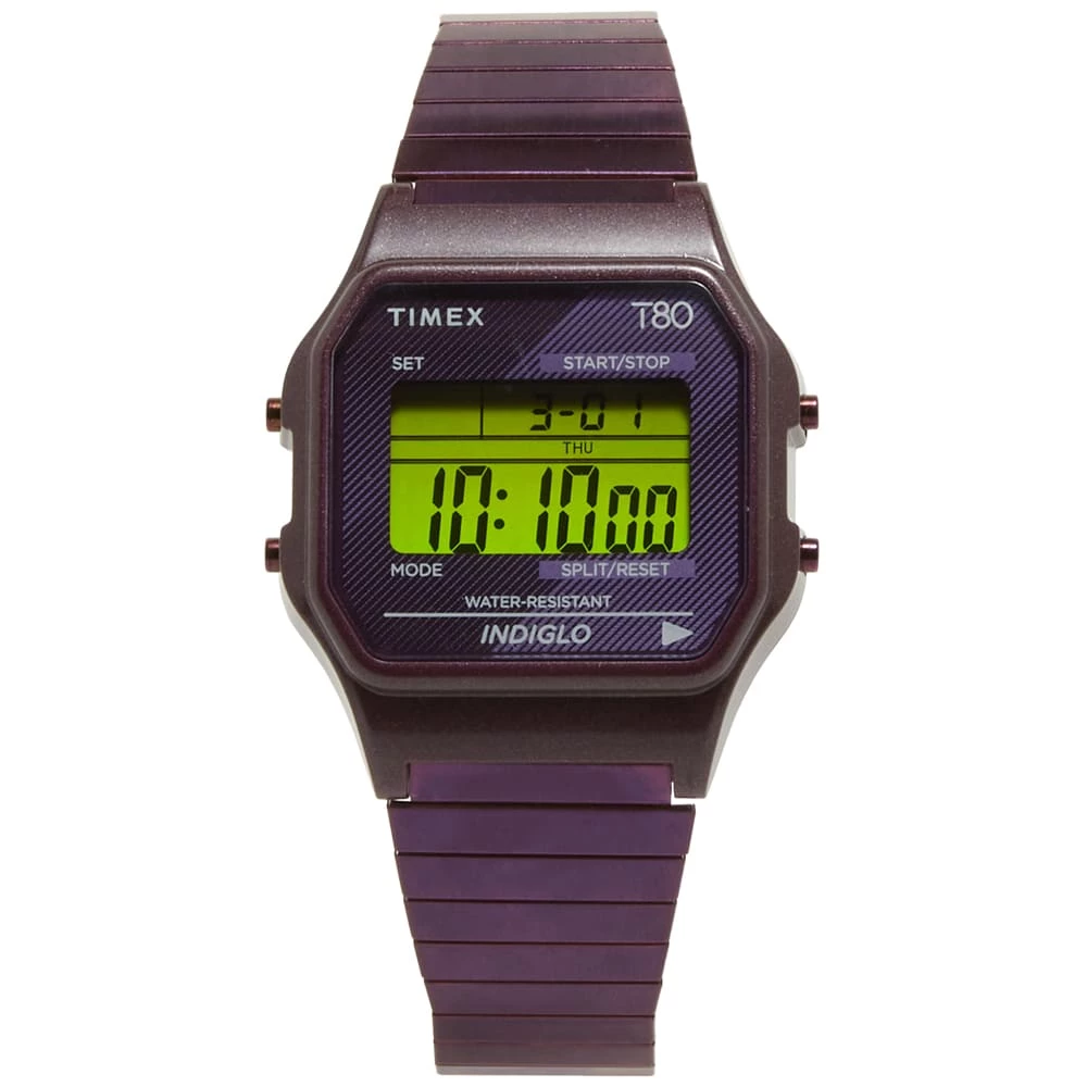 Showcases some vintage style with this 80 digital watch from Timex’s. In purple, it’s updated using an expansion band at its strap, though the digital display, INDIGLO® night-light and trusty features — a daily alarm and stopwatch feature — all nod to that ‘80s classic.