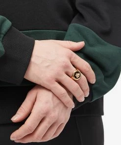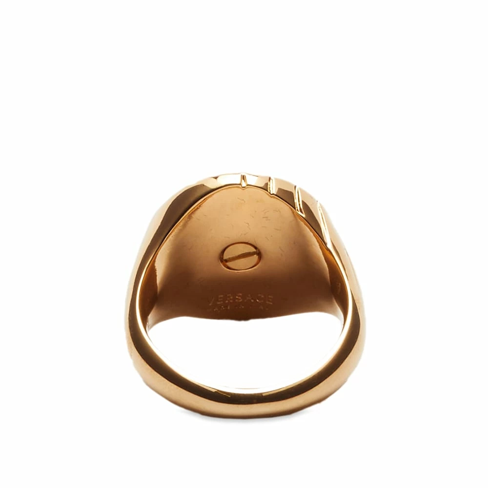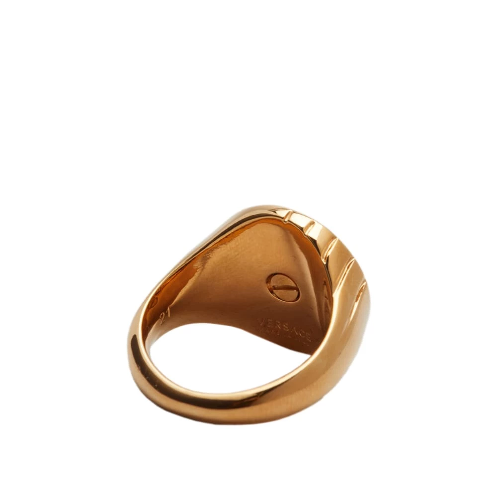 From the ancient ruins of Reggio Calabria, to your jewellery box, Versace’s Medusa head must always make a statement, whilst ensuring that everybody falls in love with her. She takes over the centre of this gold signet ring, framed in black and surrounded by the La Greca logo with engraved Versace branding.
