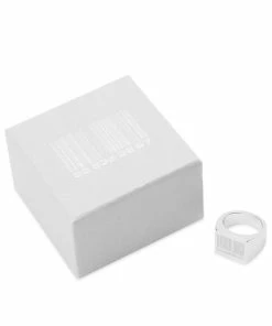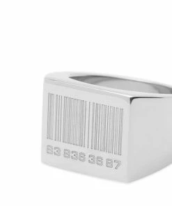 Add a luxurious touch to any outfit or occasion with this VTMNTS barcode ring. Here, the Zurich-based brand pays tribute to its signature numerical barcode logo – adopted in lieu of a traditional logo since it first launched in 2021 – in an elegant silver-tone design.