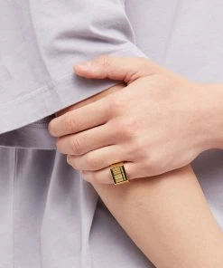 Add a luxurious touch to any outfit or occasion with this VTMNTS barcode ring. Here, the Zurich-based brand pays tribute to its signature numerical barcode logo – adopted in lieu of a traditional logo since it first launched in 2021 – in an elegant gold-tone design.